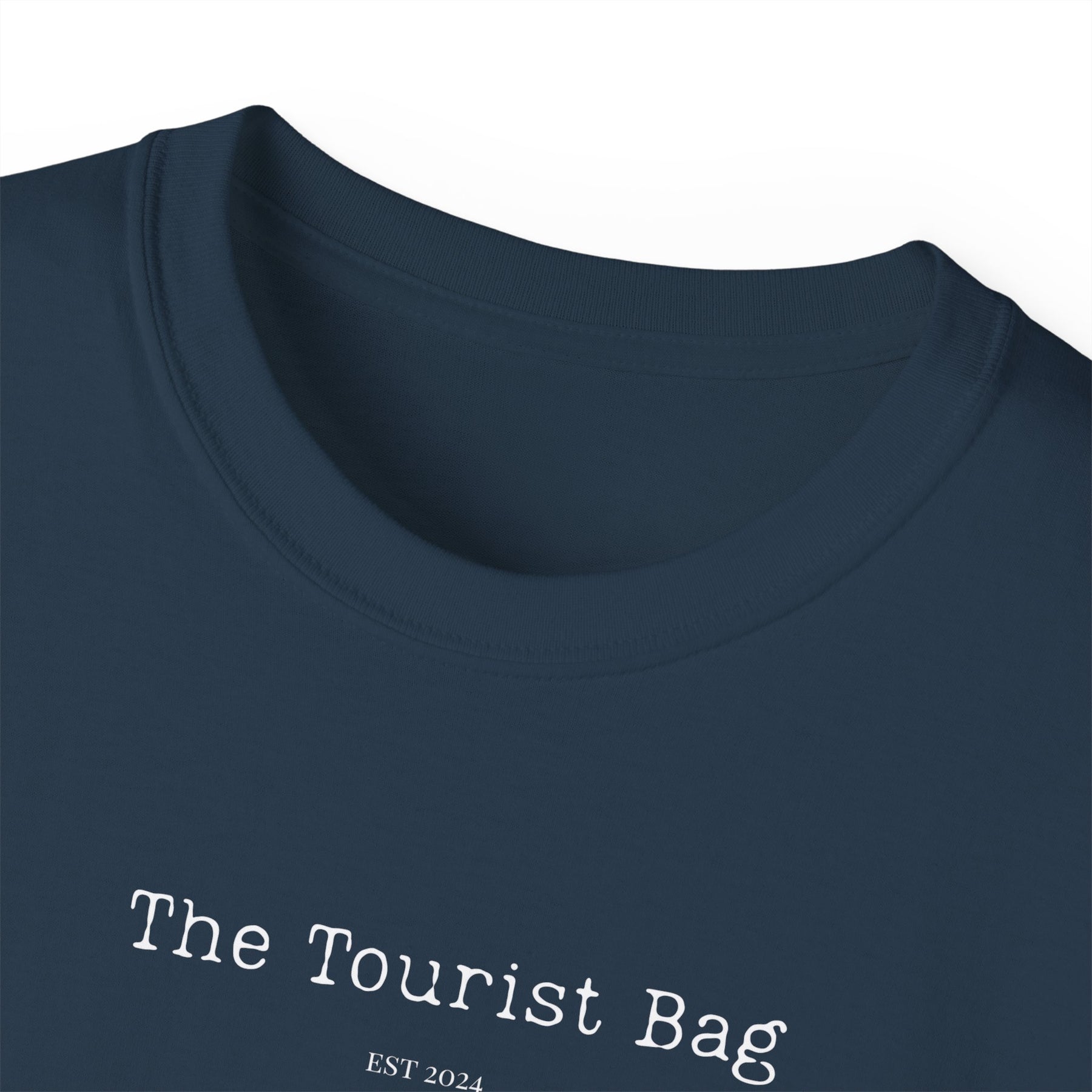 Our Tourist Bag City Edition durable ultra-cotton tee featuring clean lines and modern minimalist logo styling.  Quality cotton construction means that designs are sure to shine. The shoulders are tapped for a good upper-body fit. There are no side seams, ensuring a clean, unbroken flow. The collar has ribbed knitting for improved elasticity. The materials that went into this product are sustainably sourced and economically friendly.