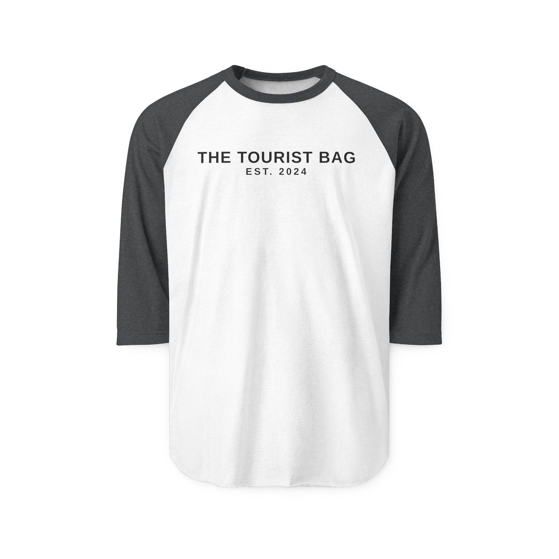 Our Tourist Bag City Edition premium Unisex Three-Quarter Sleeve Raglan Shirt crafted with modern urban style, perfect for layering during city adventures. off your laid-back style with this three-quarter raglan sleeve shirt. Made from 100% ring-spun cotton for solid colors, or a blend of cotton and polyester for heather shades, this shirt offers a soft, breathable fit. The fine-knit jersey fabric (4.5 oz/yd²) and ¾ contrast raglan sleeves give it a sporty, classic vibe.
