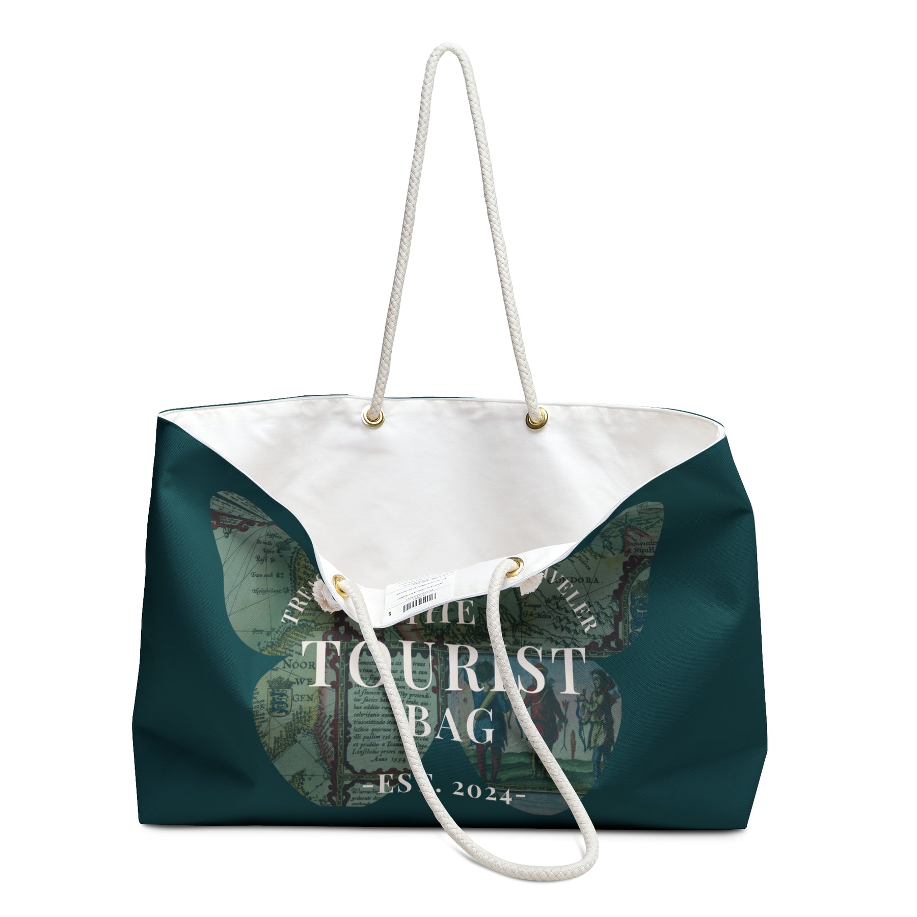 Travel in style with the  Mapped WanderWings Weekender Bag, blending timeless design with modern functionality. Featuring a vintage map butterfly silhouette against a rich teal background, this bag captures the spirit of exploration and transformation. Spacious and durable, it’s the perfect companion for weekend getaways, business trips, or everyday adventures.