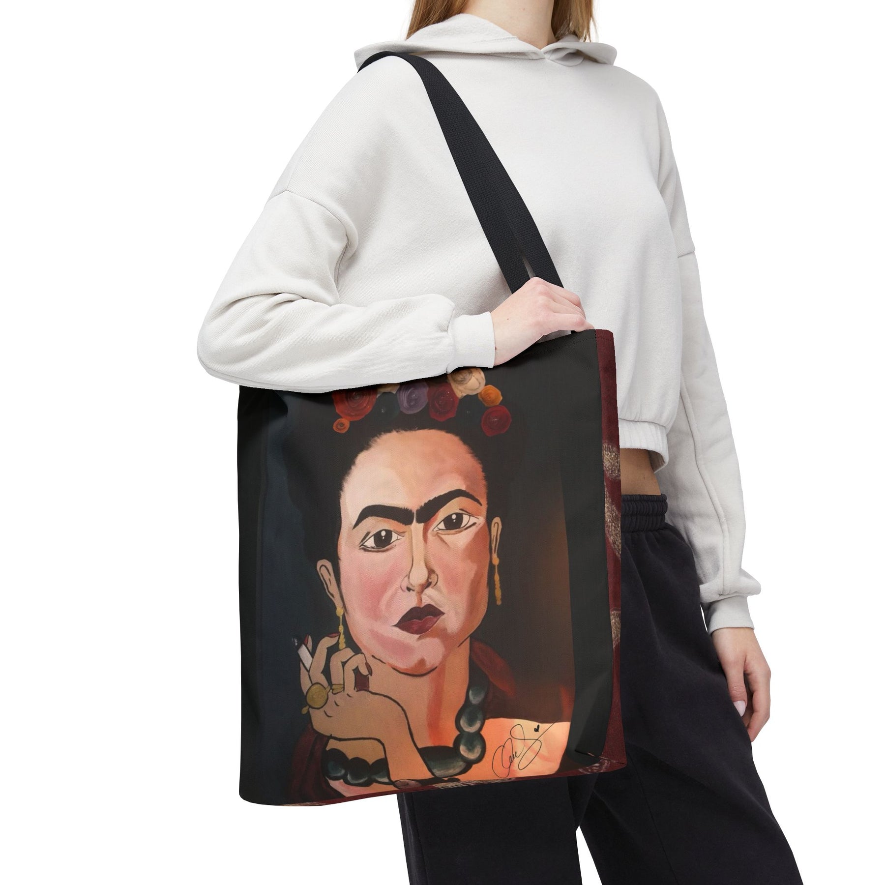 Aura’s Frida Collection – *Gilded Muse*. A statement of passion and artistry in gold and deep-red hues. Crafted from durable eco canvas, this tote is perfect for art lovers and conscious travelers.