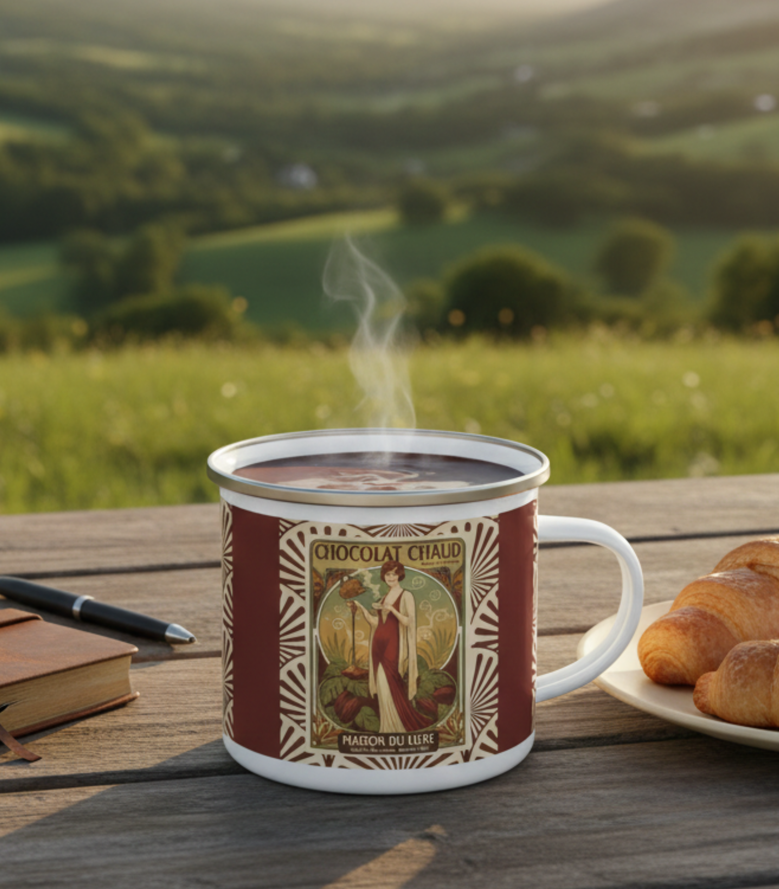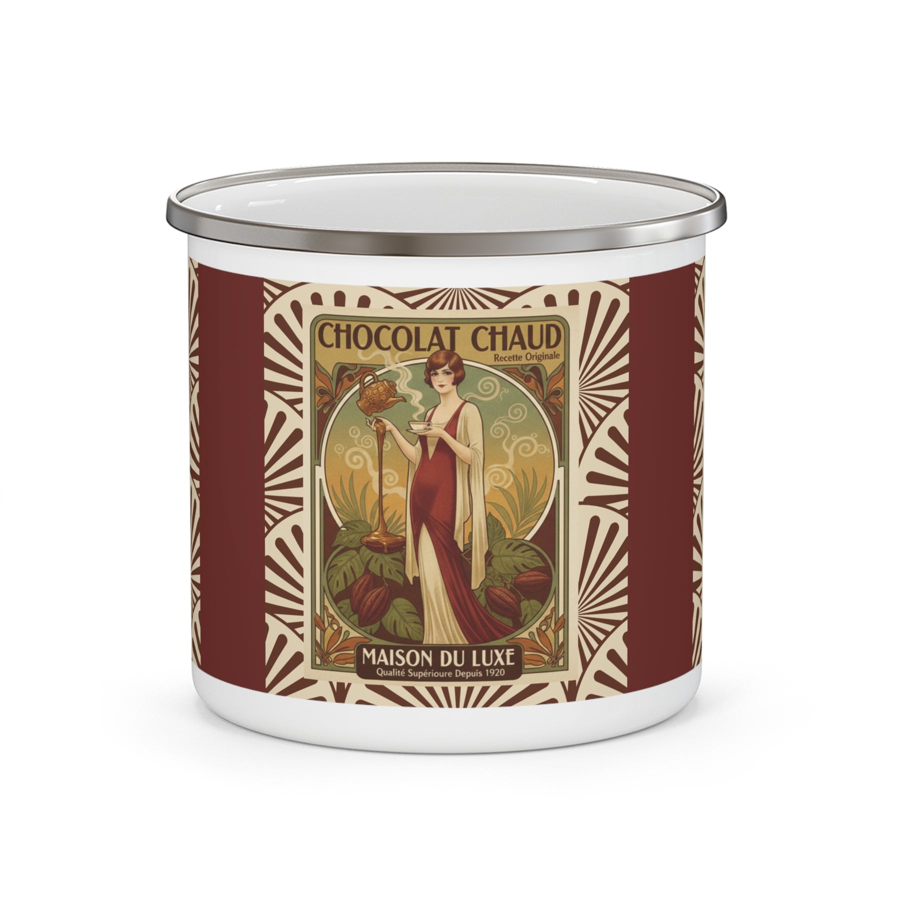 Chocolat Chaud Élégance Enamel Camping Mug | Vintage French Hot Chocolate Art Cup
