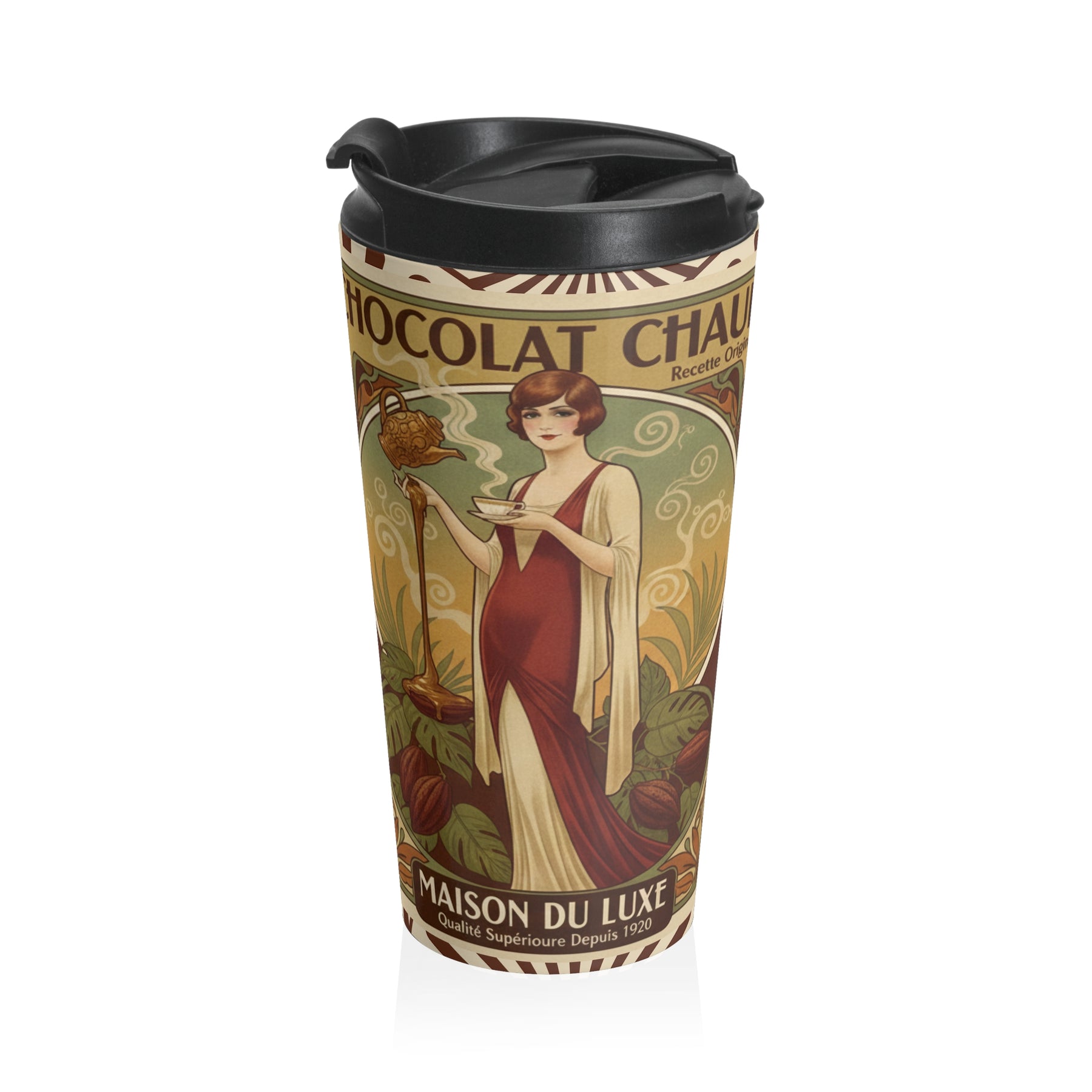 Chocolat Chaud Élégance Travel Mug | Vintage French Hot Chocolate Art Cup
