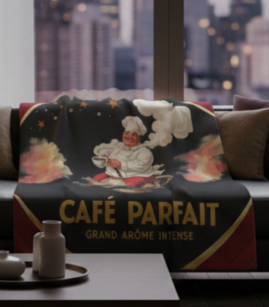 Café Parfait Royale Vintage Café Throw Blanket | French Coffee Art Décor (50 x 60)