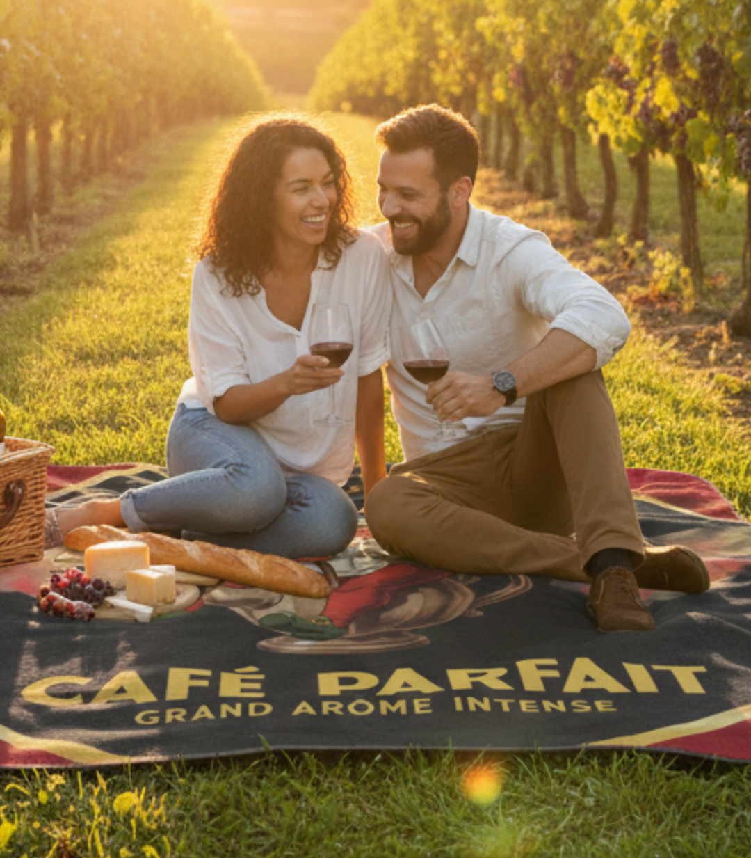 Café Parfait Royale Vintage Café Picnic Blanket | French Coffee Art Outdoor Mat