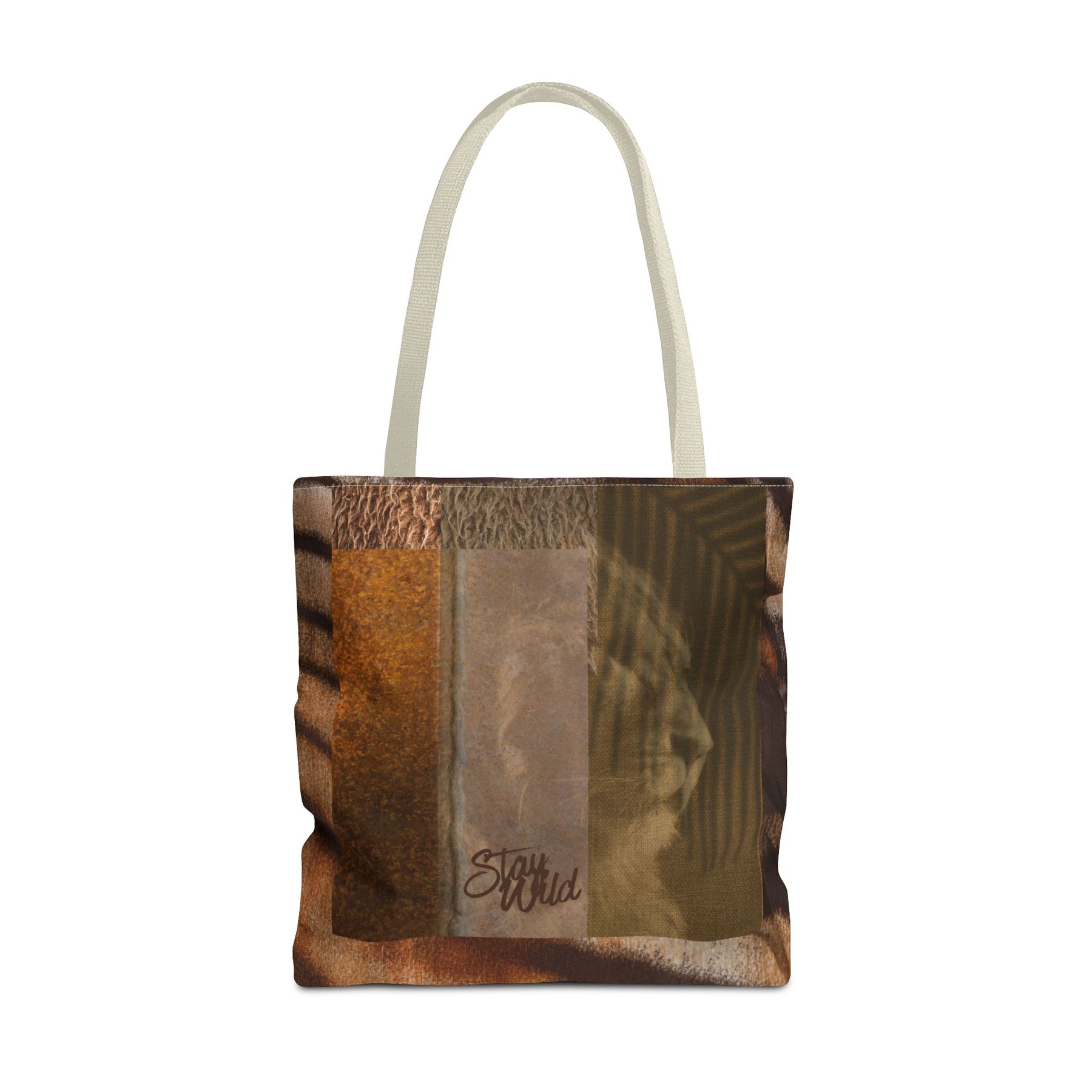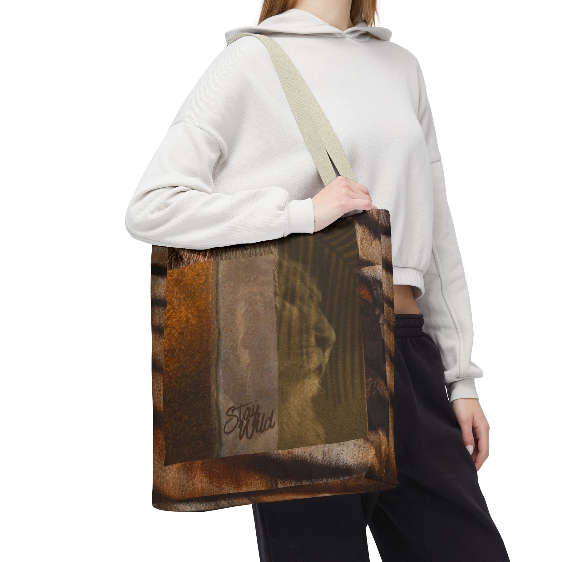 A powerful tiger design symbolizing confidence and freedom. Made with spun polyester, these bags feature double-stitched seams, cotton webbing straps, and nonwoven laminate lining for high-end durability. Y