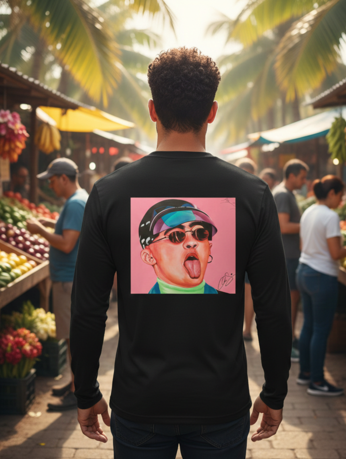 Signature Portrait Unisex Lightweight Long Sleeve Tee (Inspired Bad*Bunny)