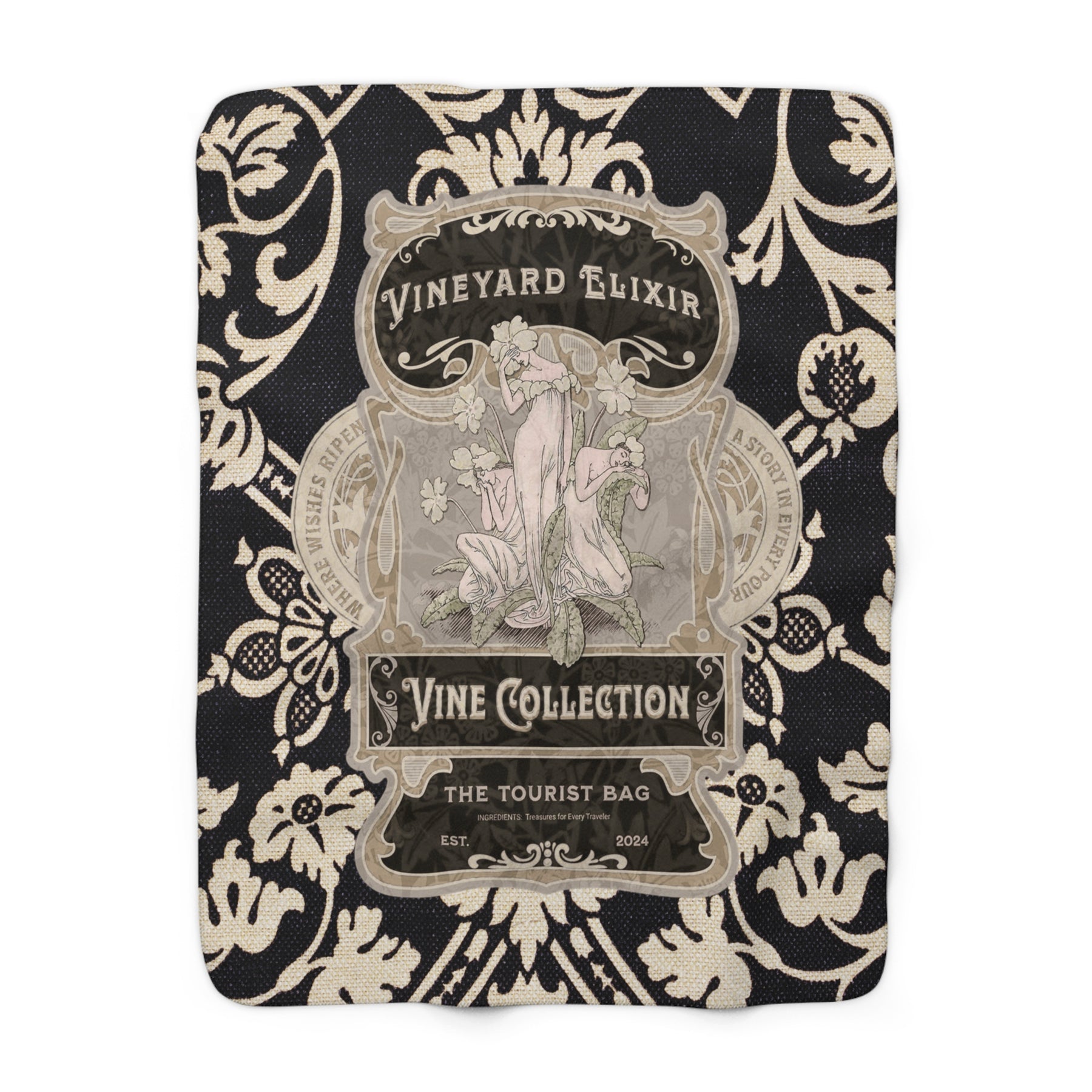 Wrap yourself in wine country comfort with the Vineyard Elixir Noir Sherpa Fleece Blanket. Inspired by traditional wine labels and vineyard heritage, this cozy throw is perfect for wine nights, cabin stays, tasting rooms, or gifting to wine lovers who appreciate classic design.